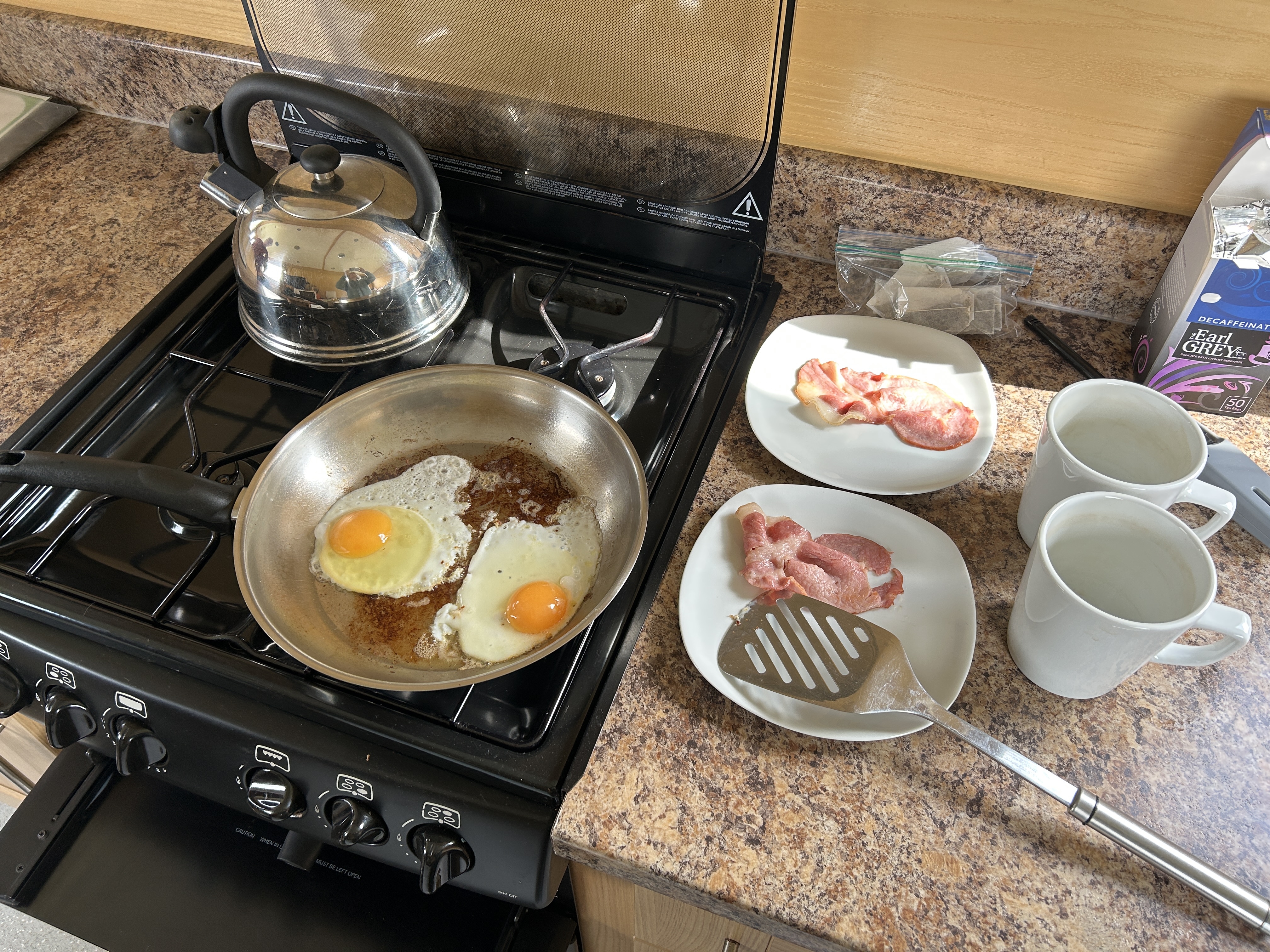 For the past few days we’ve been trying to buy eggs, but none of the local shops have had any. As John was waiting for one of our locks, there was a canalside egg cabinet – 6 eggs for 1 pound 50 (about $1.85), and we happened to have some change, so… eggs for lunch!